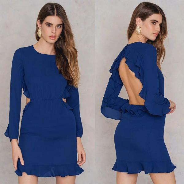 Latest Ruffle Open Back Design Blue Formal Dresses Women Images |